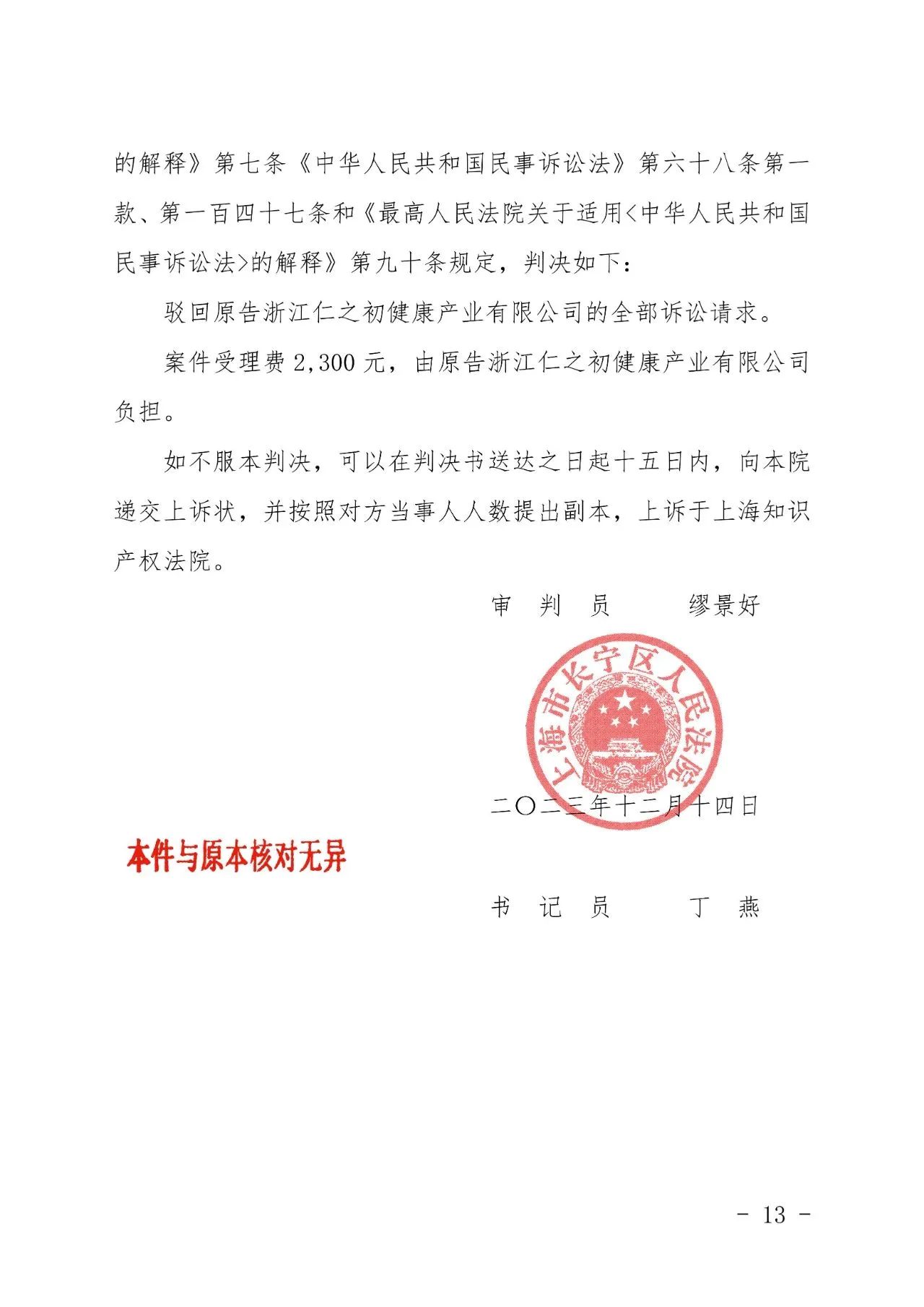 廊坊辉知胜诉佳讯 | “仁之初健康”著作权及不正当竞争纠纷案,法院:驳回全部诉讼请求!